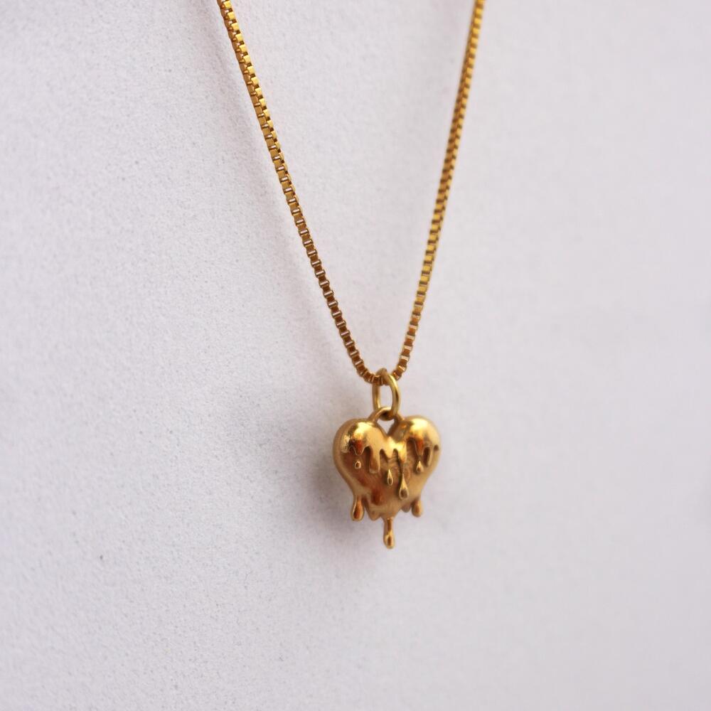 Этот кулон, созданный для подарка, своей органичной и элегантной формой прекрасно символизирует романтическую, сильную любовь. Нет ничего прекраснее, чем чувствовать, как ваше сердце тает от нежности — подарите его тому, кто заставляет ваше сердце трепетать, и покажите, как много он для вас значит. Кулон представляет собой изящное тающее сердце, изготовленное из высококачественной латуни и покрытое блестящим 18-каратным золотом. Он символизирует любовь и тающие от любви сердца. Цепочка изящная, длиной 45 см. Ощутите сочетание простоты, изысканности и непревзойденного стиля с этим шедевром.