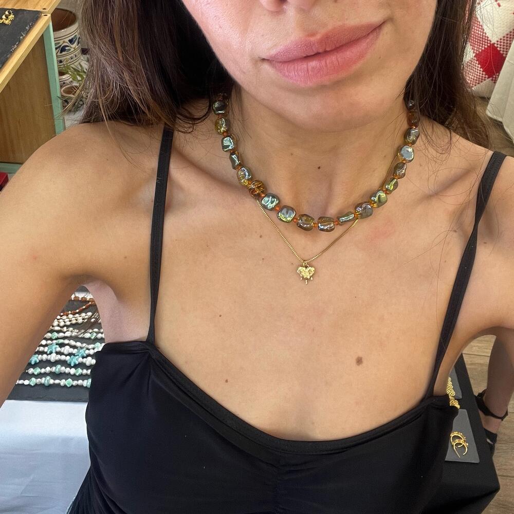 Подвеска из латуни с позолотой 18 карат. Цепь изготовлена из нержавеющей стали.