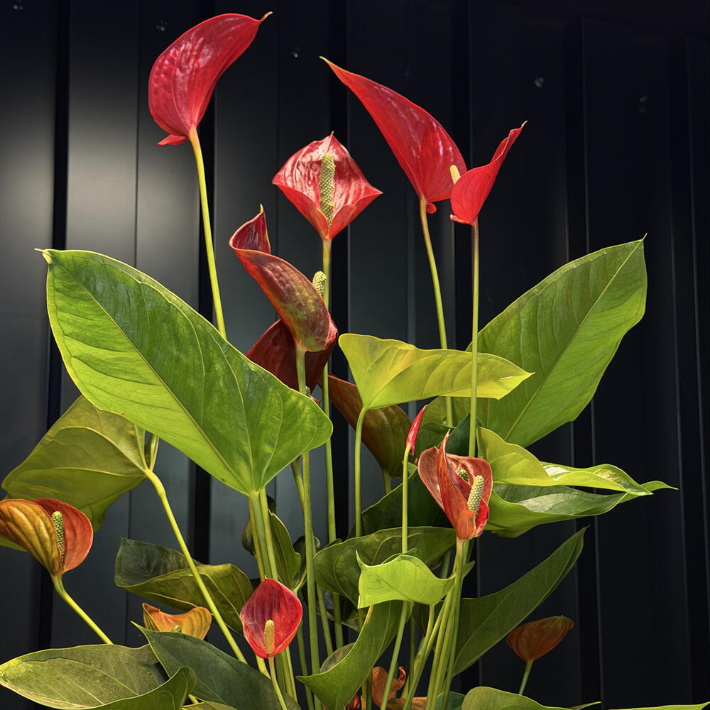 Planta exótica y elegante, conocida por sus flores brillantes y llamativas en forma de corazón. Aporta un toque sofisticado y moderno a cualquier espacio. Ideal para interiores, perfecta para decorar y crear un ambiente cálido y natural.