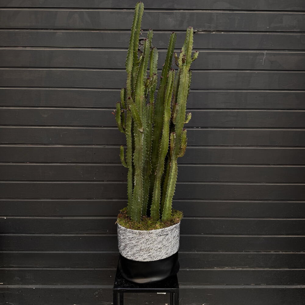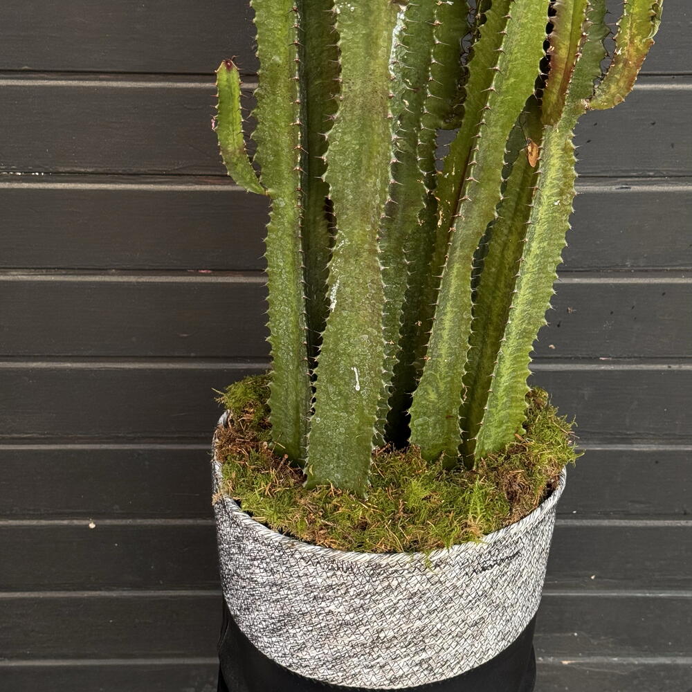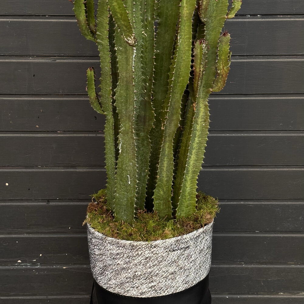 Cactus decorativo alto en maceta elegante, ideal para interiores modernos. Planta resistente y de bajo mantenimiento que aporta un toque natural y sofisticado.