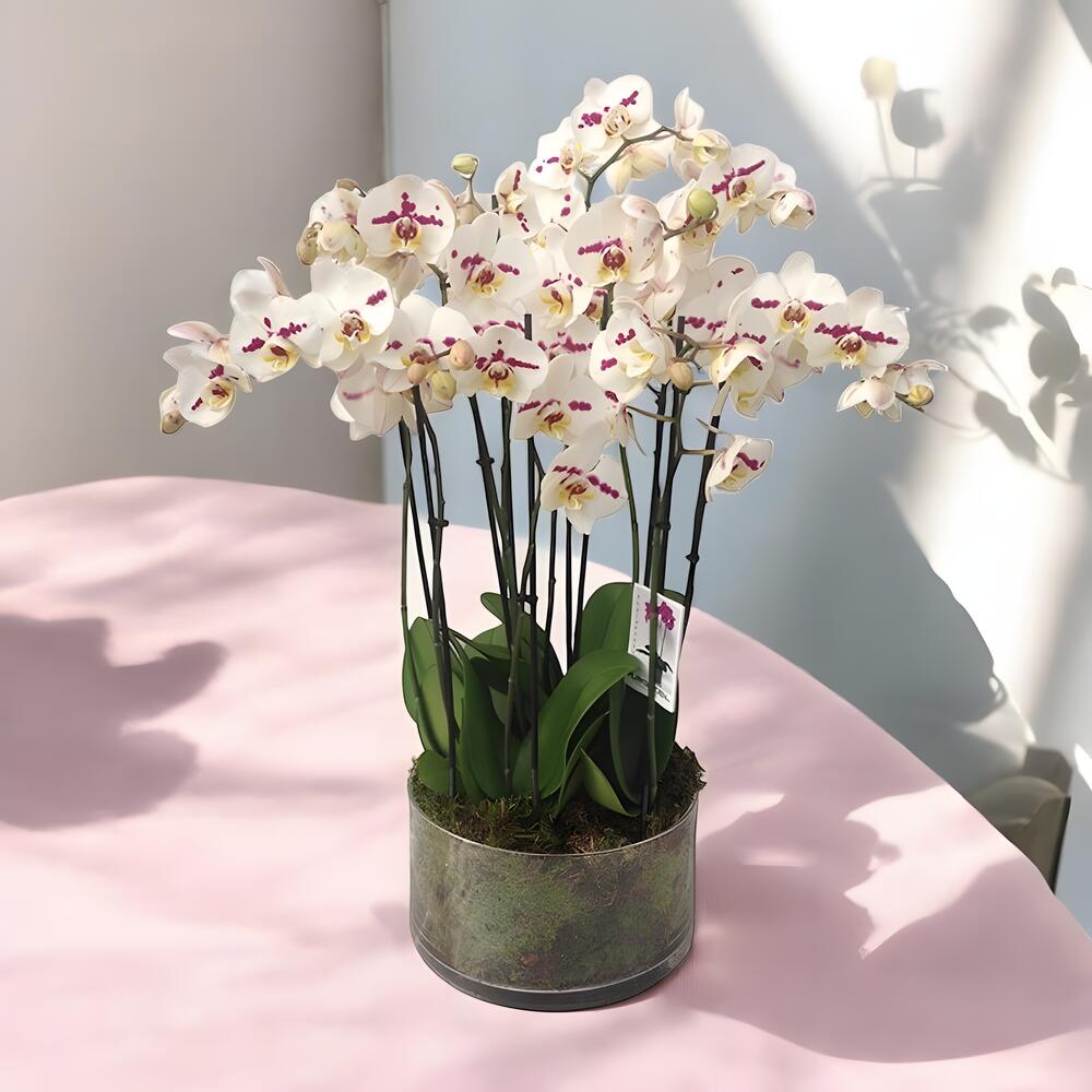 Композиция из пятнистых орхидей фаленопсис.