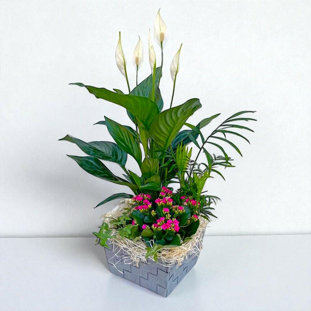 Корзина растений MAYO — элегантное и свежее сочетание зелёных и цветущих растений, идеально подходящее для декорирования любого пространства дома или офиса. Её естественный стиль и аккуратная презентация делают её идеальным подарком на день рождения, в знак благодарности, для праздников или просто чтобы передать добрые пожелания. Все растения размещены в декоративной подставке современного дизайна.