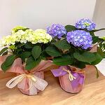 Эти элегантные гортензии в горшке — идеальное дополнение для украшения любого внутреннего или внешнего пространства. С пышными цветами кремово-белого и фиолетового оттенков эта композиция приносит свежесть, изысканность и нотку природы в ваш дом. Аккуратно завернутая в декоративную бумагу и перевязанная подходящими лентами, она идеальна в качестве подарка или для оформления особых мероприятий.