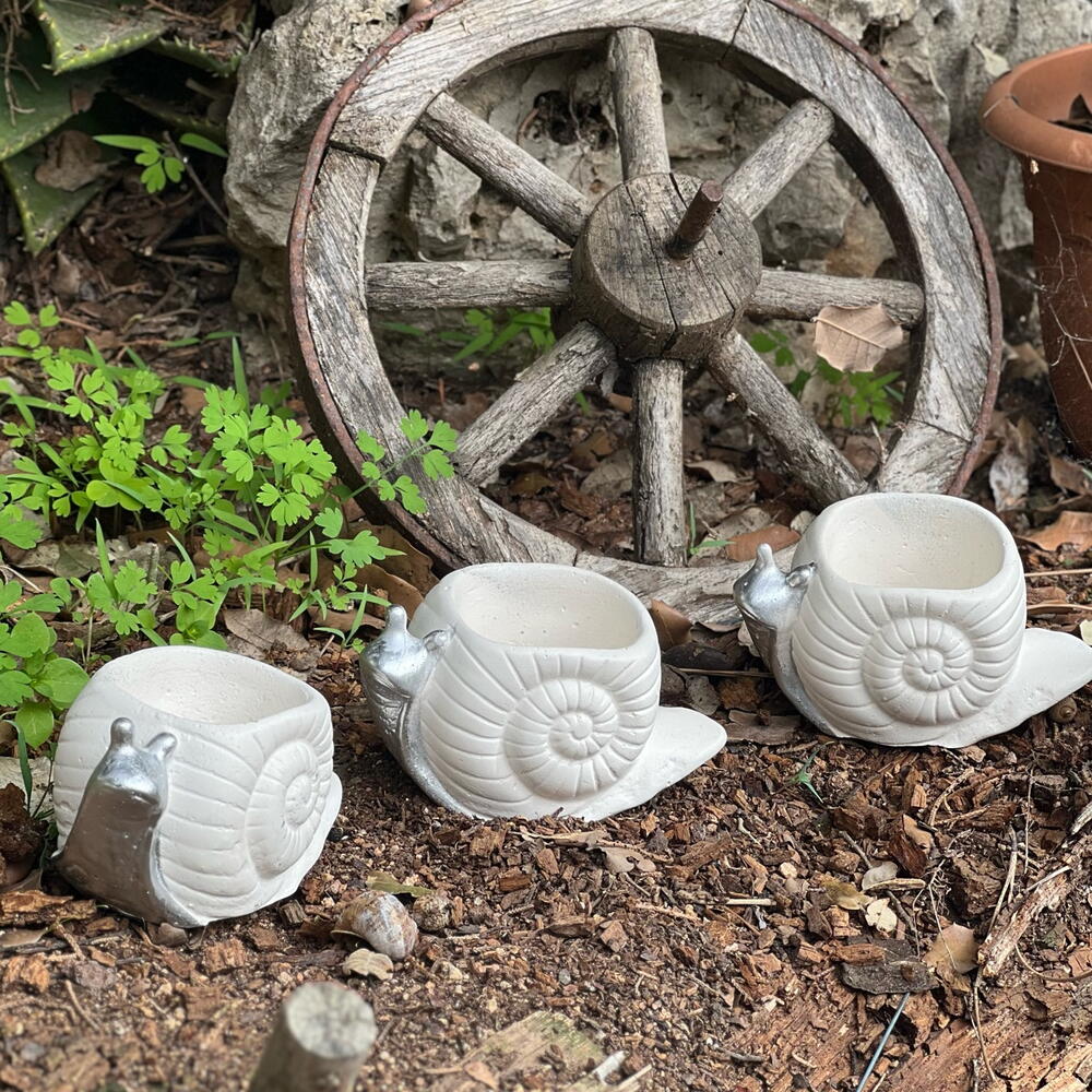 ¡Trae un poco de alegría a tu hogar con nuestros únicos conjuntos de macetas con suculentas! Tres adorables caracolitos con plantas felices ya están esperando para decorar tu espacio. ¡El regalo perfecto para ti o tus seres queridos!