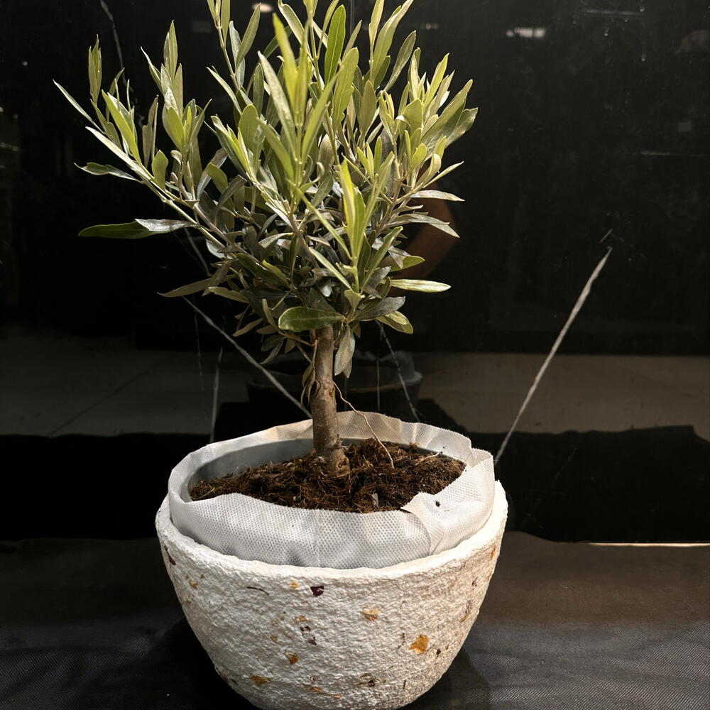 Pequeño olivo natural en maceta decorativa. Planta elegante y fácil de cuidar, ideal para interiores luminosos o terrazas. Aporta un toque mediterráneo y frescura a cualquier espacio.