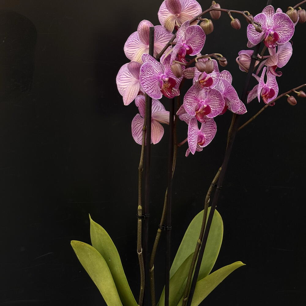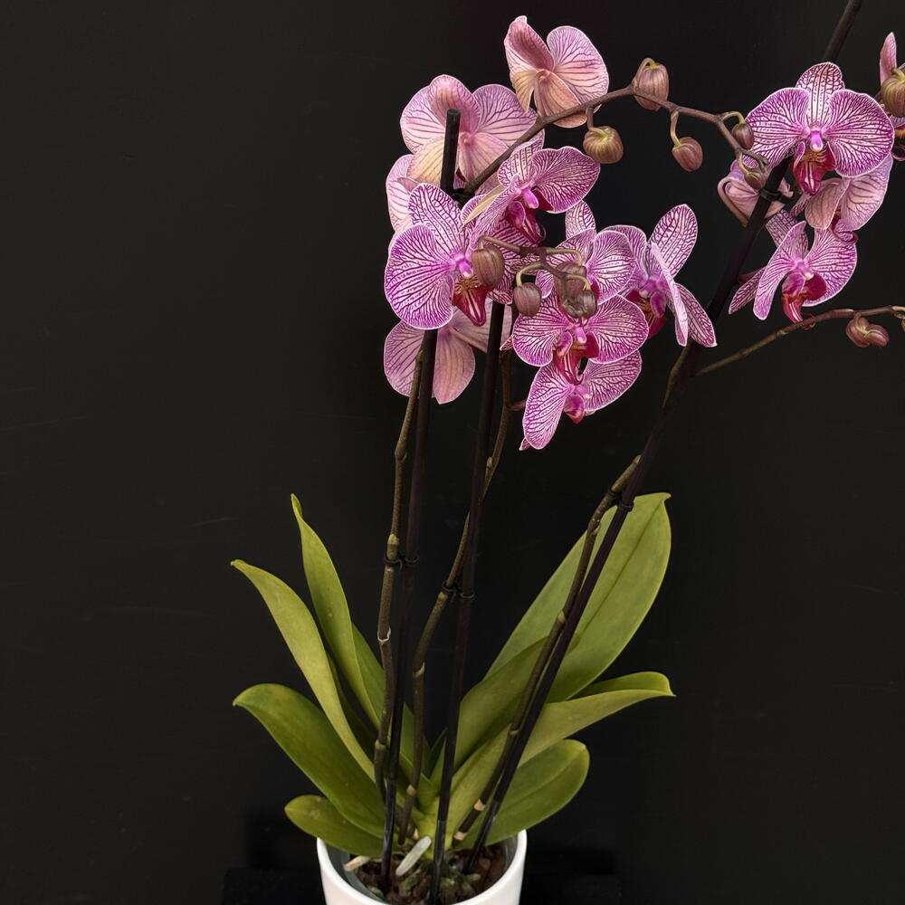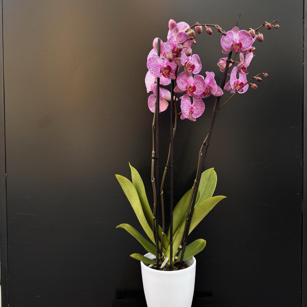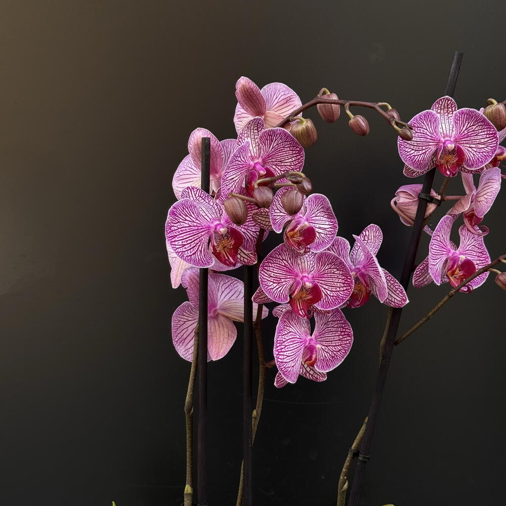 Elegante orquídea Phalaenopsis orchid de delicado tono rosa con vetas intensas, símbolo de belleza y sofisticación. Perfecta para regalar o decorar interiores, aportando un toque natural y refinado a cualquier espacio.