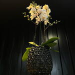 Orquidea blanca en jarron oscuro