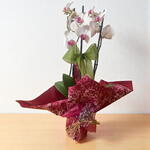 Этот прекрасный экземпляр орхидеи Phalaenopsis ослепляет своими белыми цветами с фуксиевыми оттенками, символом чистоты, любви и утончённости. Завёрнутая в декоративную красную бумагу с золотыми деталями и украшенная зелёным бантом, она передаёт элегантность и свежесть любому пространству. Это идеальный подарок для особых случаев, таких как юбилеи, дни рождения, или чтобы удивить жестом, полным нежности. Её изысканный стиль превращает каждый уголок в более уютную и изысканную обстановку. Помимо своей красоты, это долговечное растение, которое цветёт несколько раз в год. Уникальный выбор для тех, кто ценит деликатность и природу в её высшем выражении.