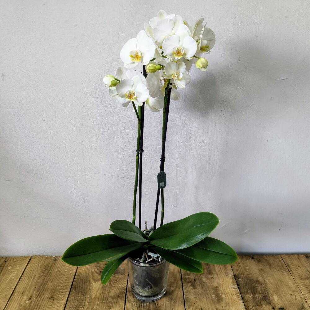 Орхидея фаленопсис «Бланка» со стеклянной подставкой