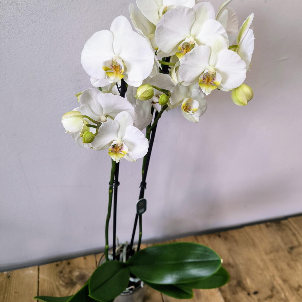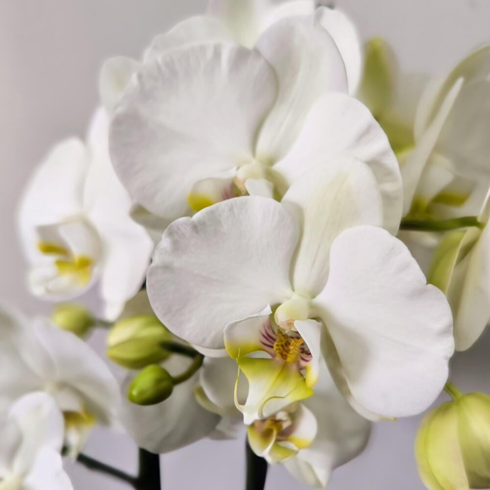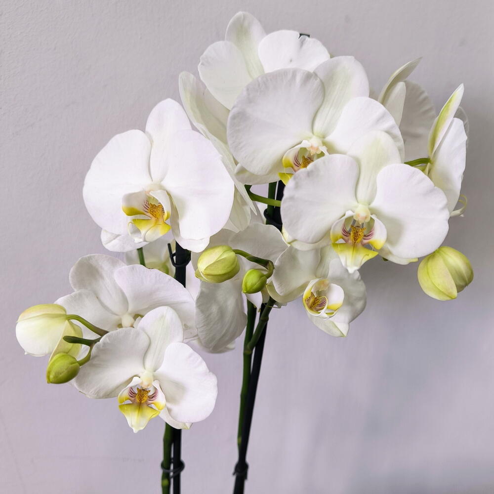 Белая орхидея Phalaenopsis — классика элегантности. Её чистые и нежные цветы передают спокойствие, превращая её в идеальный подарок или в предмет, который придаст вашему дому нотку изысканности. При должном уходе эта орхидея может цвести несколько раз в год и долго сохранять свою красоту.