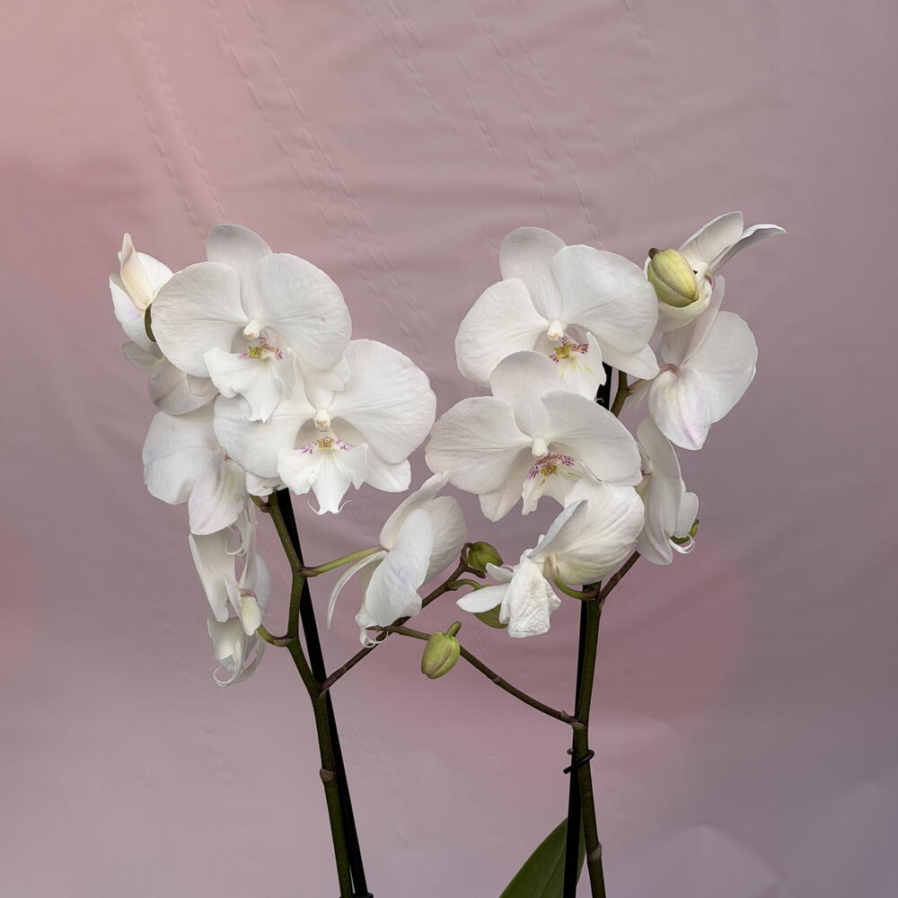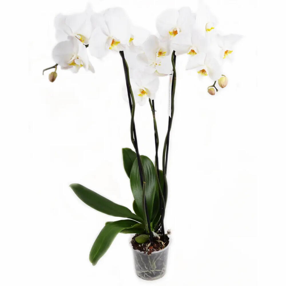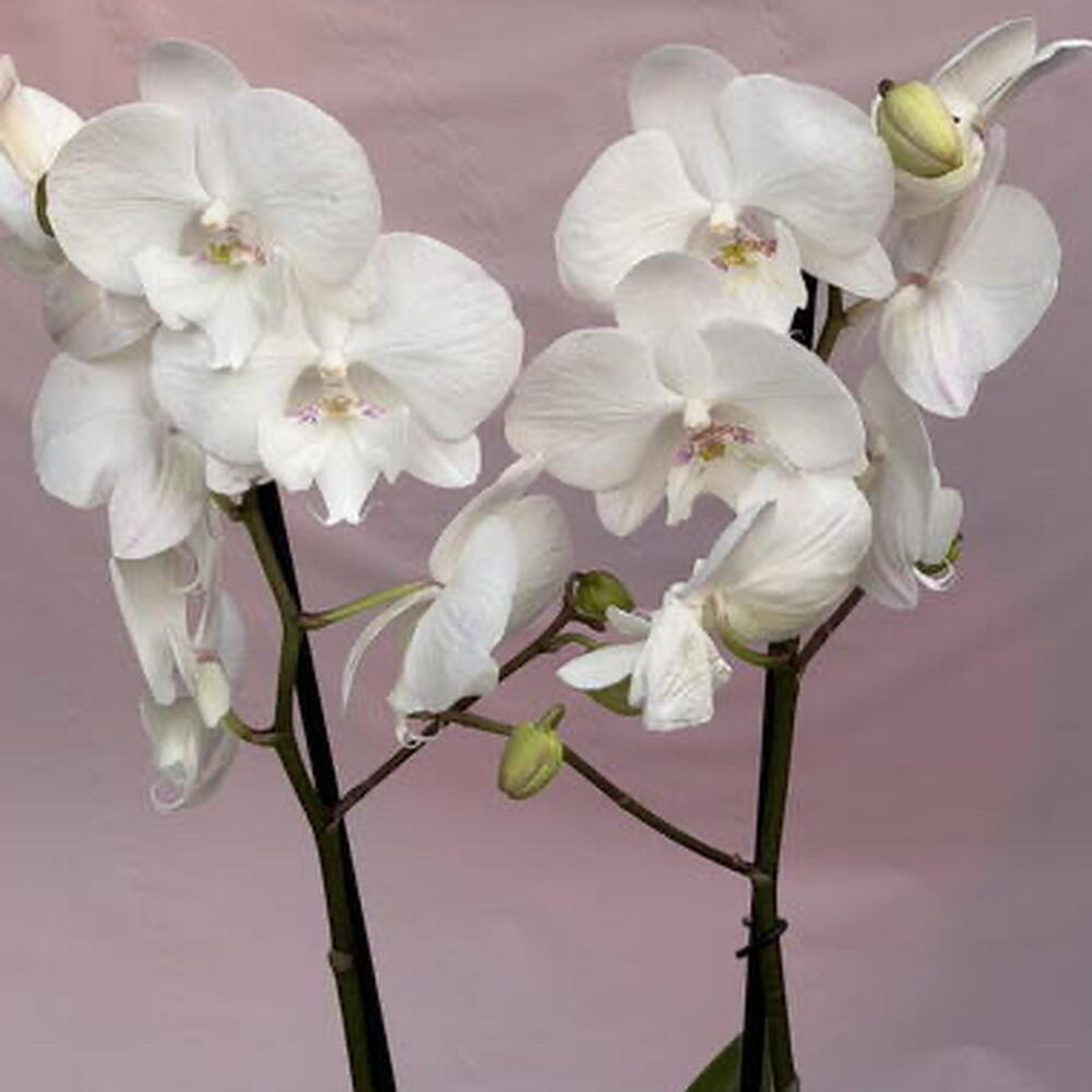 Elegante orquídea blanca natural, perfecta para decorar cualquier espacio con un toque de sofisticación y frescura. Esta planta cuenta con múltiples flores abiertas y capullos en desarrollo, lo que garantiza una floración prolongada. Su color blanco simboliza pureza y armonía, ideal para el hogar, la oficina o como un regalo especial. Viene en una maceta transparente que permite observar el estado de las raíces y facilita su cuidado. Es una planta de bajo mantenimiento, solo necesita buena iluminación indirecta y riego moderado para mantenerse hermosa por más tiempo. Características: • Orquídea natural de flores blancas • Varios tallos con abundante floración • Incluye maceta • Ideal para decoración o regalo • Fácil de cuidar