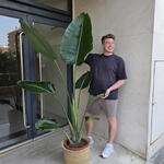 **Cuidados para la Strelitzia (Ave del Paraíso):** La Strelitzia necesita mucha luz, preferiblemente sol directo varias horas al día. Riégala moderadamente, dejando que la capa superior del sustrato se seque entre riegos. En invierno, reduce la frecuencia. Prefiere temperaturas cálidas (entre 18 y 28 °C) y buena humedad ambiental. Fertiliza cada 2–3 semanas en primavera y verano con abono para plantas de flor. Trasplanta cada 2–3 años o cuando las raíces ocupen toda la maceta. Limpia sus hojas con un paño húmedo para mantenerlas sanas y brillantes.