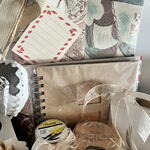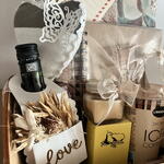 бутылка вина - 1 шт. бант из рафии - 1 шт. кофе без кофеина - 1 шт. деревянная коробка, гравированная вручную - 1 шт. птичка декор - 1 шт. коробка с печеньем с шоколадными каплями - 1 шт. блокнот для заметок - 1 шт. органайзер для счетов или важных документов - 1 шт. сердце с бабочкой декор - 1 шт. мини мыла - 1 шт.