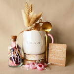 Эта кружка LOVE — романтичный подарок на День святого Валентина, идеальна, чтобы удивить милым и трогательным жестом. Небольшой, красивый и очень особенный подарок. Подаётся в полупрозрачном мешочке с розовым бантом и открыткой ко Дню святого Валентина и включает кружку LOVE, ложку матового золотого цвета, конфеты ко Дню святого Валентина, миндальные бискотти, шоколад Simón Coll, специальный к Дню святого Валентина, и баночку розового ароматического попурри. Идеальна, чтобы дарить любовь в виде маленьких деталей, которыми можно наслаждаться каждый день.