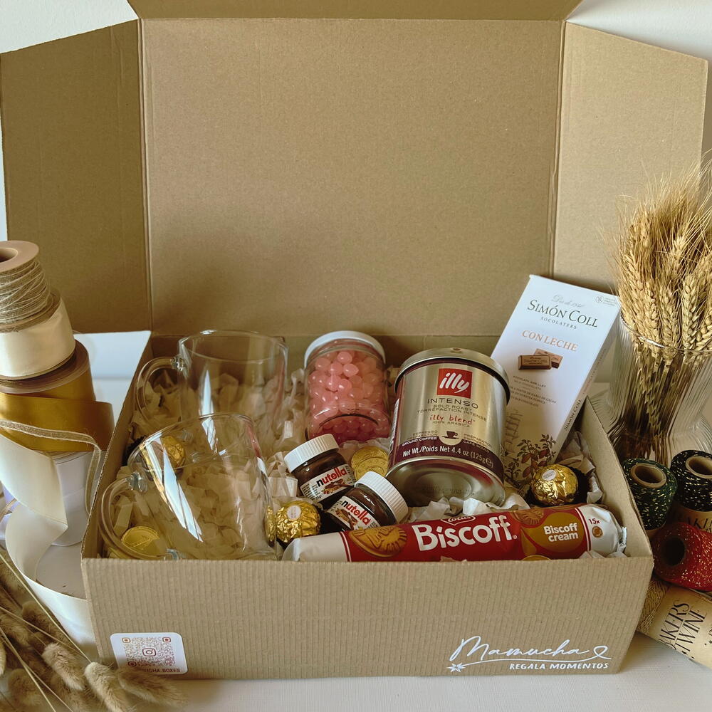 Насладитесь сладким и роскошным завтраком с этим эксклюзивным набором. Всё начинается с банки восхитительного молотого кофе Illy (125 граммов), идеально подходящего для утреннего пробуждения или для спокойного послеобеденного перерыва. Дополните свой кофе нежным печеньем Biscoff, плиткой шоколада Simon Coll или шоколадными конфетами Ferrero Rocher. А для любителей шоколада мы включили две мини-баночки Nutella и банку хлопьев в шоколадной глазури. В набор также входят две элегантные прозрачные кружки для ароматного кофе. Идеальный подарок для сладкоежек и кофеманов.