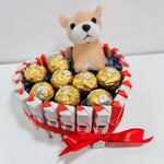 Kinder chocolate - 21 шт. Ferrero rocher - 8 шт. плюшевая собачка - 1 шт.