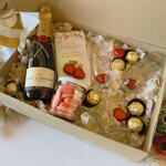 Disfruta de una caja de lujo con nuestra cesta especial. Este conjunto contiene 6 delicados bombones Ferrero Rocher que se derriten en la boca, 6 corazones de chocolate, perfectos para compartir con alguien especial. Acompañado con 2 copas de cava y una botellita de Champagne Moet y Chandon de 37,5 cl para un brindis dulce y espumoso. Además, incluye un frasco lleno de sabrosas gominolas en forma de corazón y una tableta de chocolate con almendras de Simón Coll para agregar un toque de refinamiento a tu mañana. Perfecto para los amantes del chocolate y las buenas celebraciones.