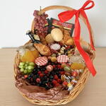 cerezas - 250 gr frambuesas - 125 ud. croissants - 9 ud. uvas verdes - 500 gr moras frescas - 150 ud. A usted hurgando - 500 gr arándanos - 250 ud. botellita de aceite de oliva virgen extra - 1 ud. sobres de jamón de bellota ibérico - 2 ud. panes redondos - 3 ud. queso de untar - 1 ud. frascos de mermelada artesanal - 1 ud. macarons variados - 5 ud. bombones de chocolate lindo - 200 gr