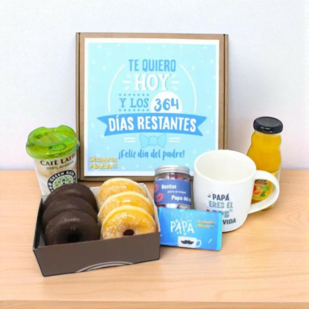Sorprende a papá con este desayuno dulce y emotivo, diseñado especialmente para celebrar el Día del Padre con amor, humor y dulzura. La caja “Te quiero hoy y los 364 días restantes” incluye detalles originales como una taza con mensaje, deliciosos mini donuts, gominolas personalizadas y café latte. Es el regalo perfecto para demostrar cuánto lo quieres no solo un día… ¡sino todos! Este desayuno a domicilio para papá es ideal para regalar en su día, entregado con estilo y cariño. 🎁👨👧👦 ¡OJO! El pedido se entregará a lo largo del día y no a una hora determinada. El número de seguimiento se proporcionará al cliente en el chat de la plataforma. Por indicaciones específicas de entrega contactar directamente al vendedor por el mismo chat.