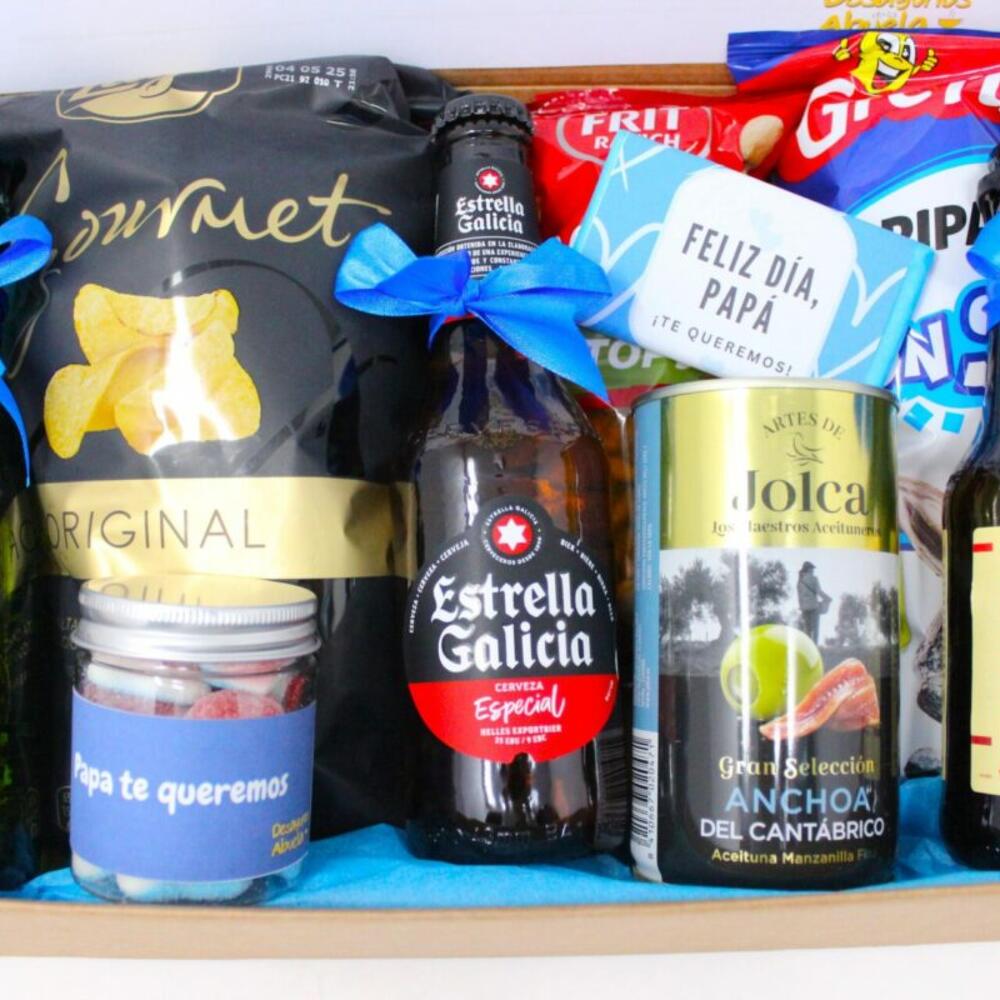 Sorprende a tu padre con un regalo original y divertido para el Día del Padre: el Kit Cervecero “Papá eres la Caña”. Este set exclusivo es perfecto para los papás que disfrutan de un buen aperitivo con sabor y personalidad. Ideal para compartir en casa viendo el fútbol, una peli o simplemente disfrutando de un momento de relax. Presentado en una caja kraft con diseño personalizado, es el detalle que hará que se sienta valorado y muy querido. Recomendaciones de conservación: Las cervezas deben mantenerse en un lugar fresco y seco, preferiblemente refrigeradas antes de su consumo. Las aceitunas deben conservarse en lugar fresco y, una vez abiertas, mantenerse refrigeradas y consumirse en pocos días. Las patatas, frutos secos y gominolas deben mantenerse cerradas herméticamente en un lugar seco para conservar su frescura. ¡OJO! El pedido se entregará a lo largo del día y no a una hora determinada. El número de seguimiento se proporcionará al cliente en el chat de la plataforma. Por indicaciones específicas de entrega contactar directamente al vendedor por el mismo chat.