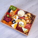 Una tabla gourmet moderna y colorida, perfecta para compartir o regalar. Combina quesos finos, embutidos artesanales, frutas frescas y frutos secos, acompañados de dip cremoso, panecillos y un toque dulce con chocolates y mermelada artesanal. Ideal para eventos, picnics, reuniones o momentos especiales. ✨ ¡Una experiencia visual y gastronómica que conquista todos los sentidos!