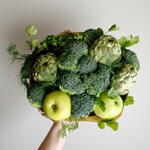 manzana verde - 2 ud. alcachofa - 3 ud. brócoli - 6 ud. eneldo fresco - 5 ud. perejil rizado - 5 ud.