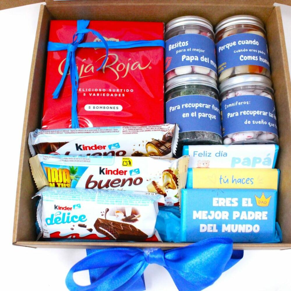 Sorprende a papá con el regalo más original y emotivo del Día del Padre: nuestra Caja “Feliz Día del Padre”, llena de dulces, chocolatinas y gominolas con mensajes personalizados y divertidos. Es el detalle perfecto para papás con sentido del humor y amantes de los snacks. Cada artículo está cuidadosamente elegido para hacerle reír, emocionarse y disfrutar al máximo de su día especial. Ideal como regalo único, emotivo y cargado de cariño para el mejor padre del mundo. Recomendaciones de conservación: Guardar en un lugar fresco y seco. Las chocolatinas y gominolas deben mantenerse lejos del sol o fuentes de calor para preservar su sabor y textura. El contenido está listo para regalar directamente, no requiere refrigeración.