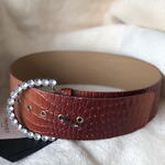 Красивий шкіряний ремінь, коричневого кольору з градієнтом. Розмір S Пряжка з блискучими камінцями Ефект крокодилової шкіри.