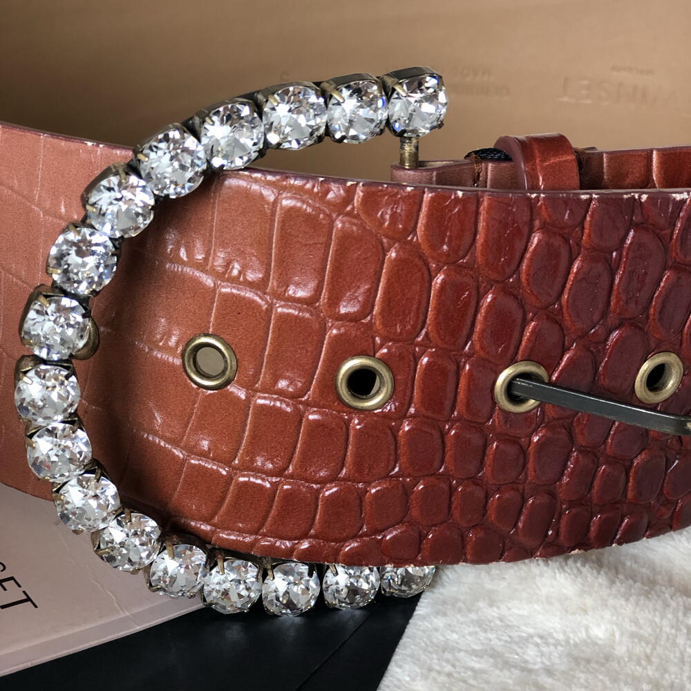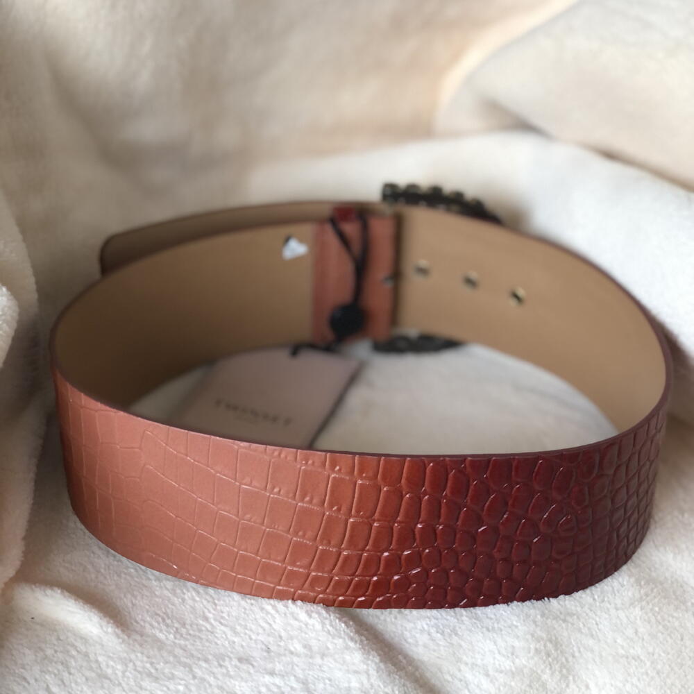 Красивий шкіряний ремінь, коричневого кольору з градієнтом. Розмір S Пряжка з блискучими камінцями Ефект крокодилової шкіри.