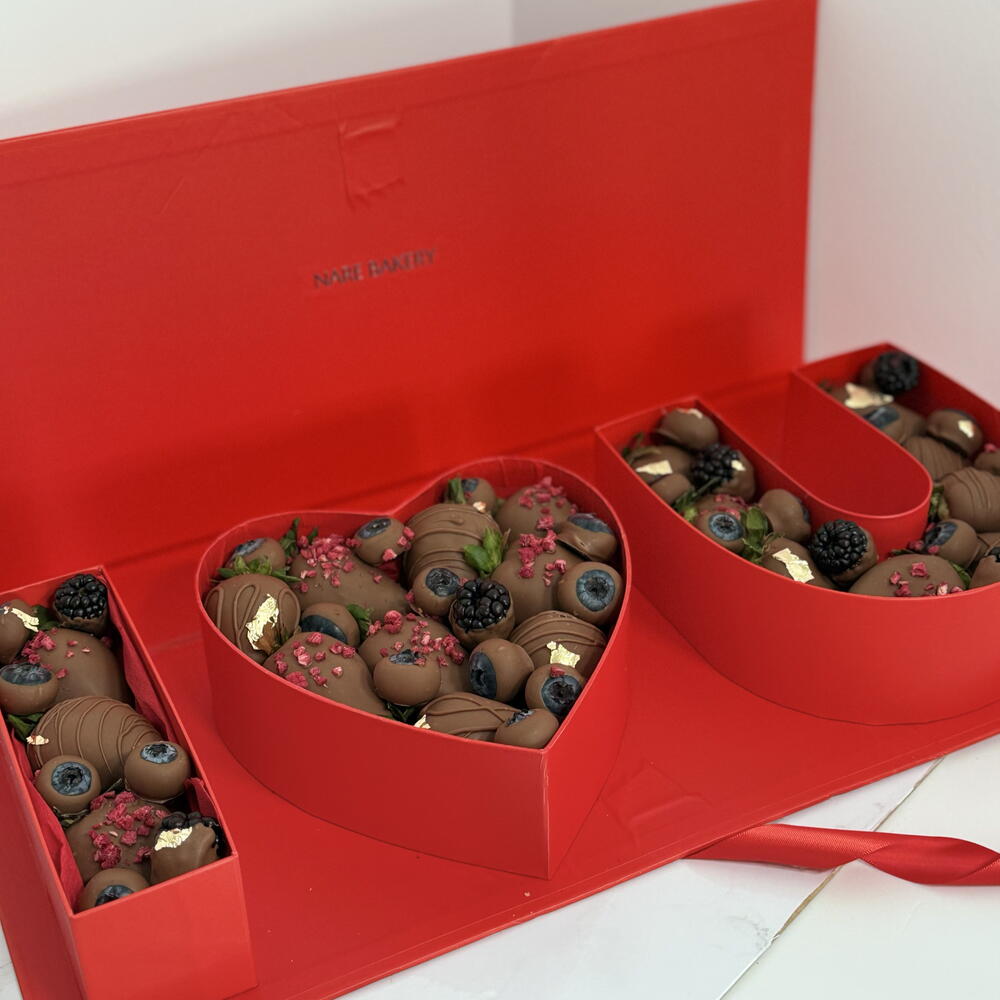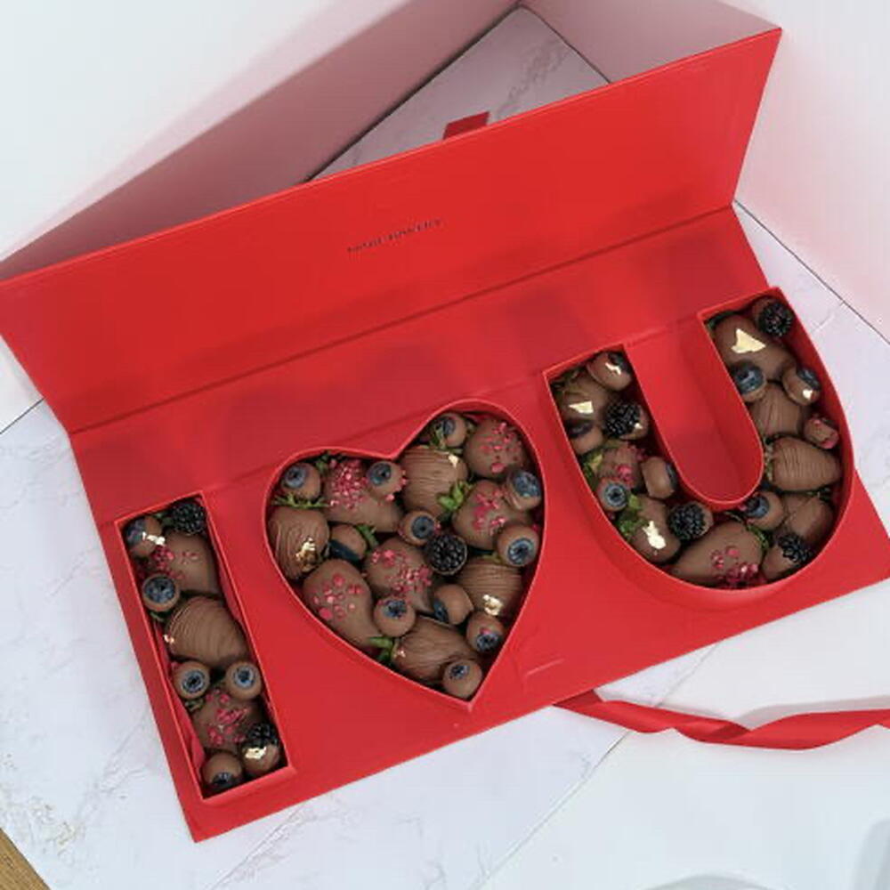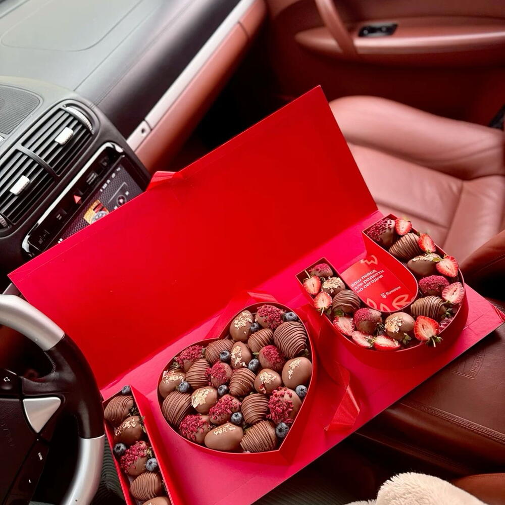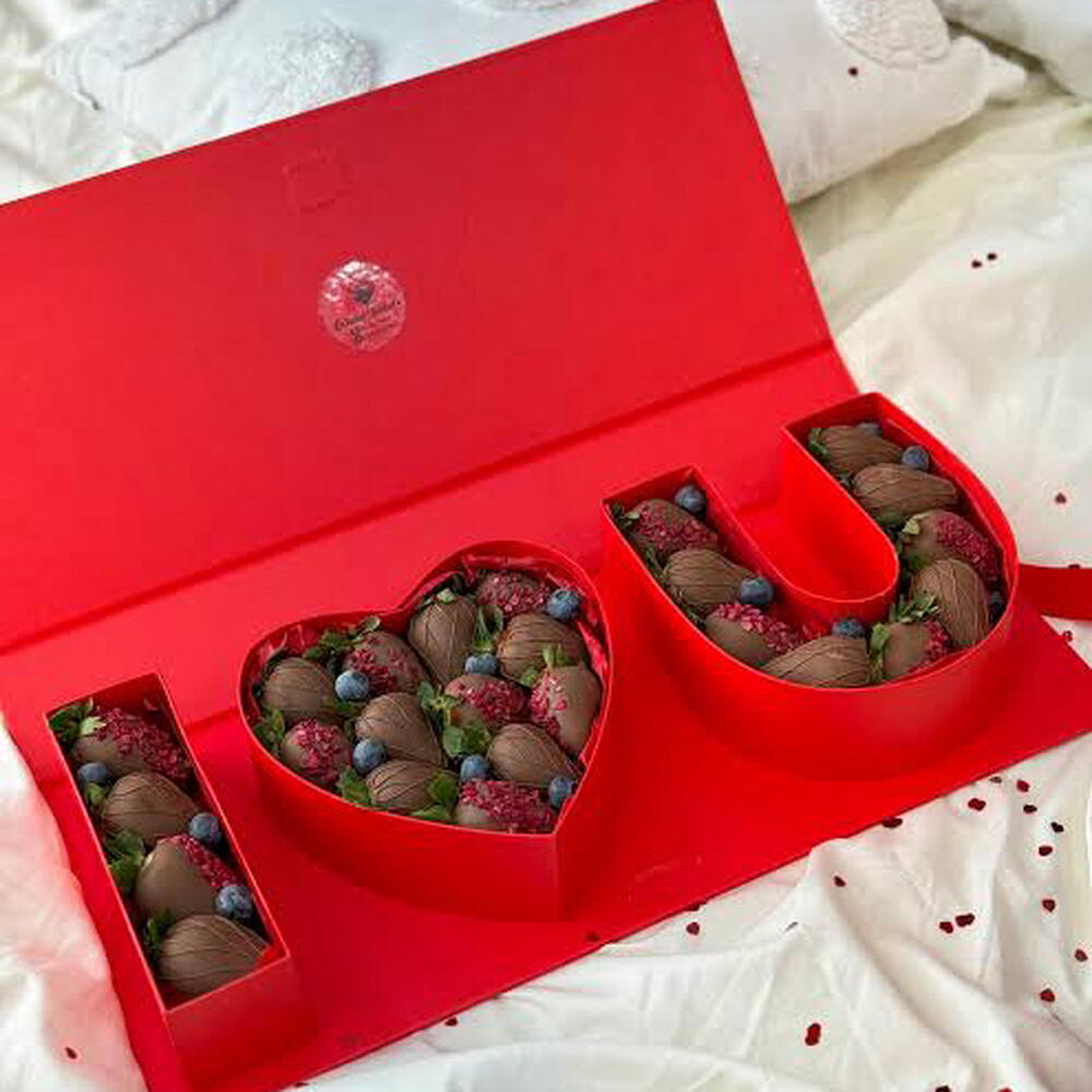 Елегантна червона коробочка «Я тебе кохаю», яка поєднує ніжну красу свіжих натуральних троянд із непереборною спокусою полуниці в шоколаді. Кожна деталь ретельно підготовлена, щоб створити романтичний подарунок, ідеальний для того, щоб здивувати когось на річниці, дні народження чи будь-яку особливу подію. Поєднання краси та смаку в одній коробці. Зберігайте полуницю в холодильнику. Найкраще спожити протягом 24–48 годин.