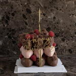 La Choco-Berry Celebration Tower — це набагато більше, ніж десерт; це святковий досвід, створений, щоб захопити всі відчуття. Ми поєднали інтенсивність какао зі свіжою кислинкою червоних ягід, щоб створити ідеальний подарунок.