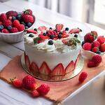 Торт три молока з червоними ягодами