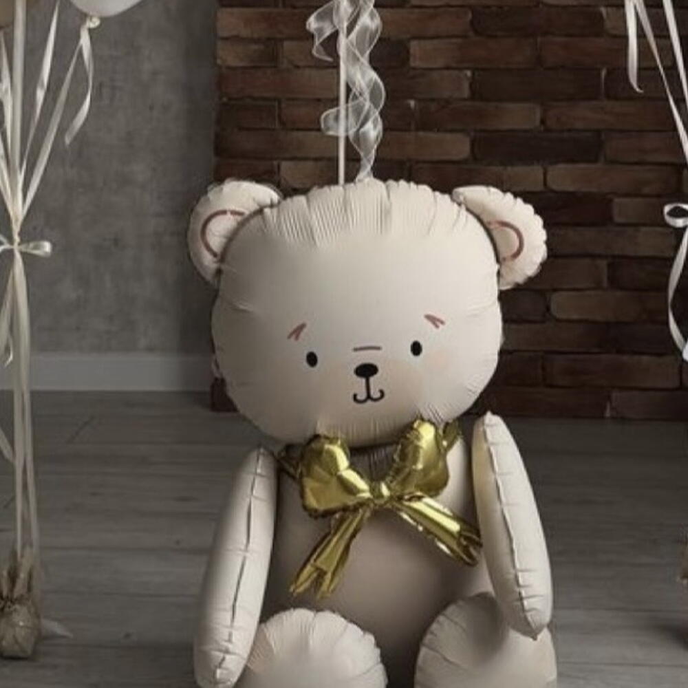 Набір кульок для новонароджених - Повітряна куля у формі ведмедика 90*81 см - Бульбашкова куля 60 см з маленькими кульками - 2 букети кульок: латексні кульки (8 шт), кульки у формі серця (2 шт), кульки з піною (4 шт)