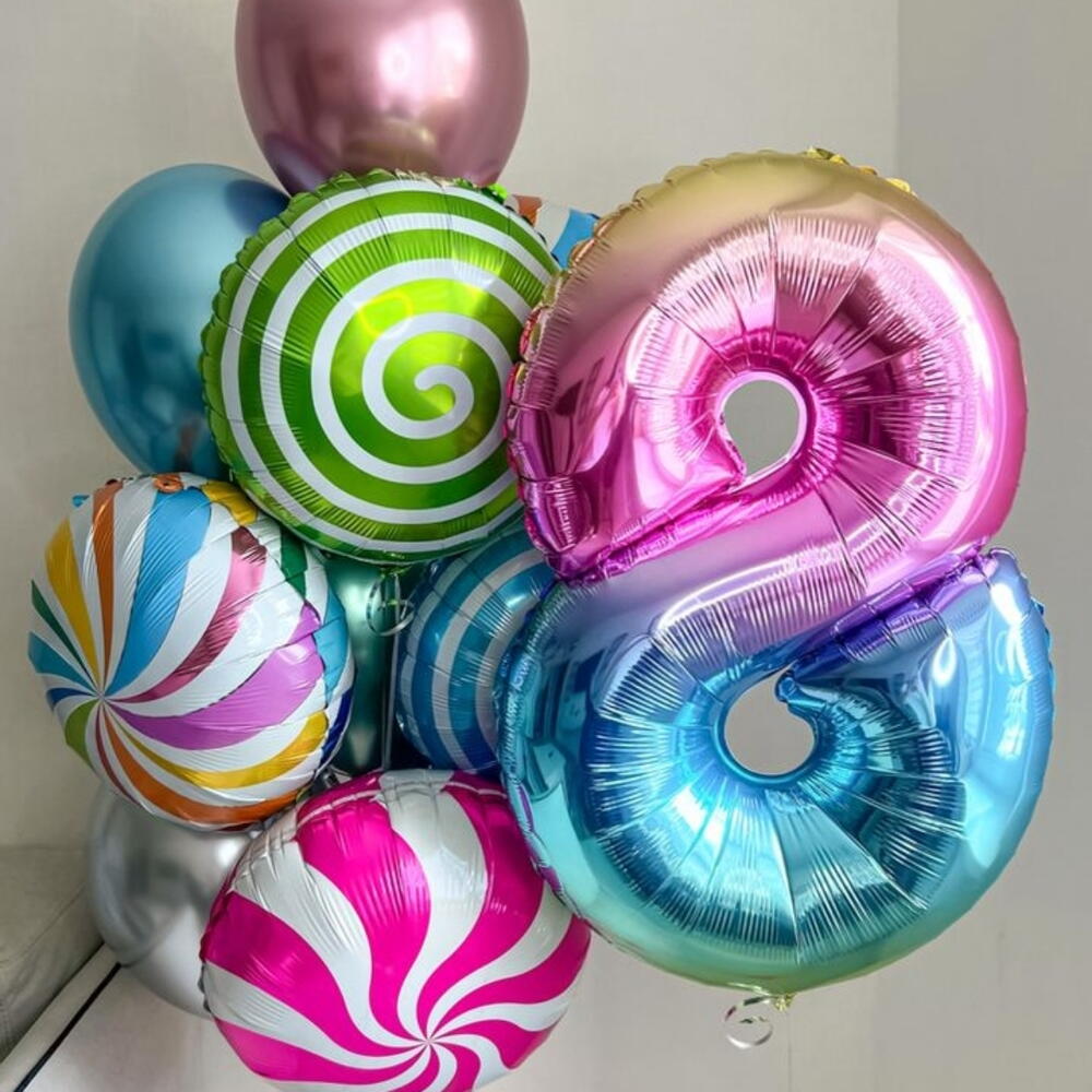 Різнокольорова композиція, яка миттєво приносить радість. Ідеально підходить для дітей та дорослих. 5 - Металеві кульки різних кольорів 5 - Звичайні кульки різних металевих кольорів 1 - Металева кулька з цифрою