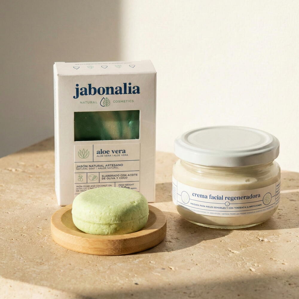Алое вера – один із найпоширеніших інгредієнтів у косметиці, відомий своїми численними перевагами для шкіри: воно зволожує, регенерує та забезпечує природний догляд за обличчям. Цей набір містить одне з наших найпопулярніших мил – Алое Вера. Він також включає наш регенеруючий крем для обличчя, який підходить для всіх типів шкіри, особливо для чутливої та тієї, що потребує додаткового зволоження. Нарешті, ви також знайдете наш твердий шампунь для частого використання – універсальний шампунь для всіх типів волосся, який природним чином очищає та зволожує. Оригінальний та ідеальний подарунок для несподіванки! Наш ультразволожувальний набір для всіх типів шкіри! Мило з алое вера ручної роботи, регенеруючий крем та шампунь для частого використання.