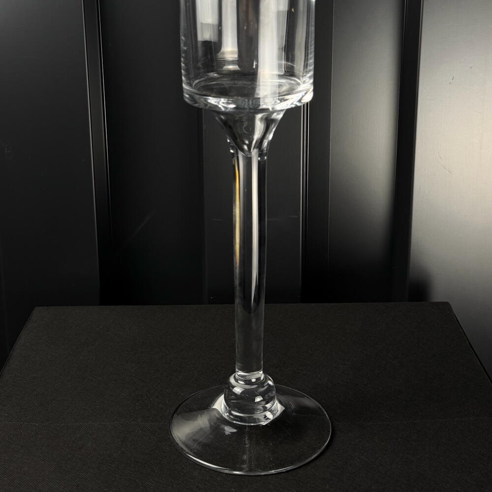 Jarrón de vidrio transparente con pie alto, elegante y sofisticado, ideal para flores largas y decoración de eventos. a.170