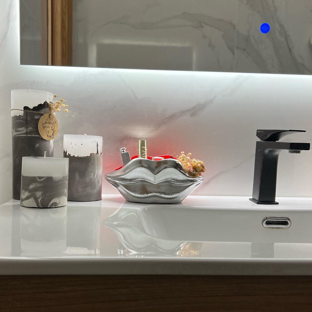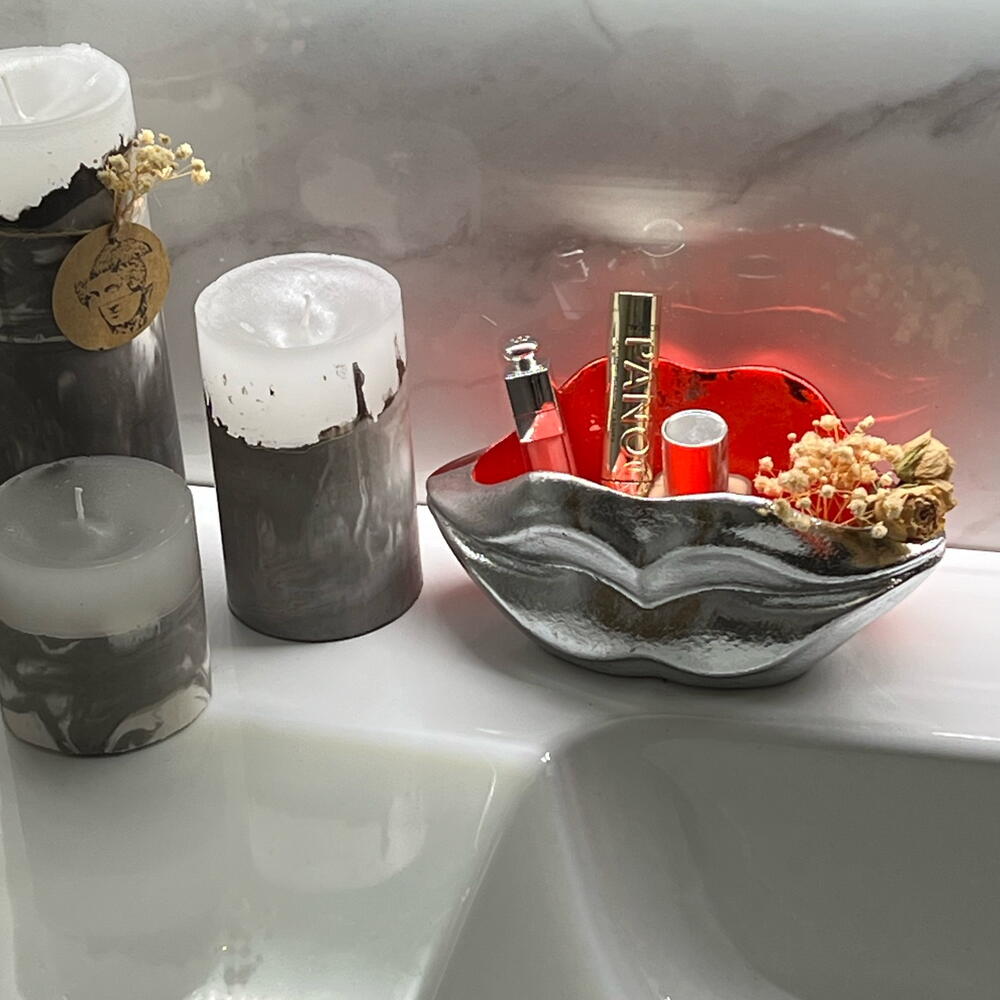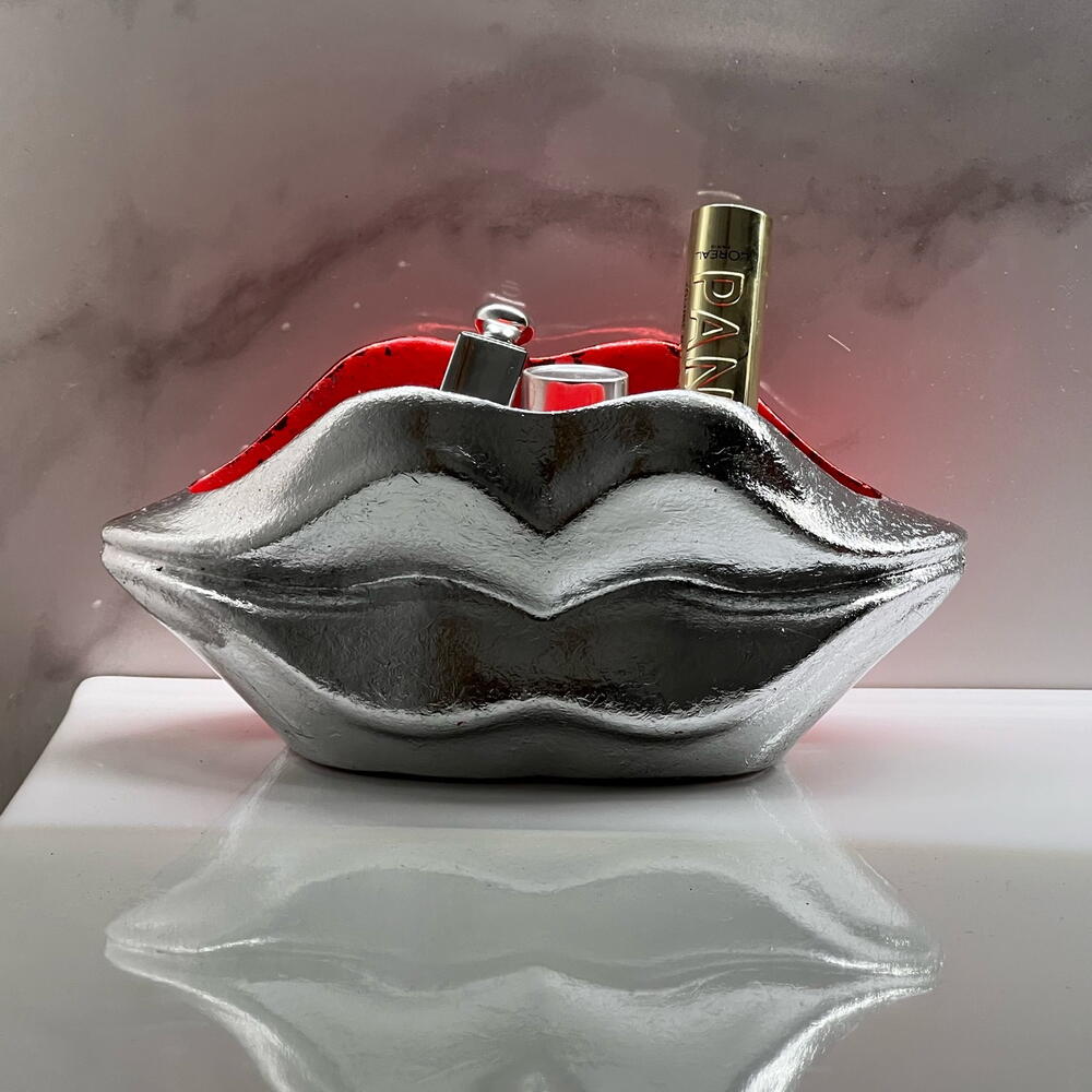 Багатофункціональний органайзер. Двоколірний: червоний та срібний. Матеріал: гіпс Можна використовувати: у ванній кімнаті для пензлів та декоративної косметики. У спальні для ювелірних виробів та різних дрібних предметів; у коридорі для ключів або дрібних предметів. У вітальні для сухоцвітів тощо.