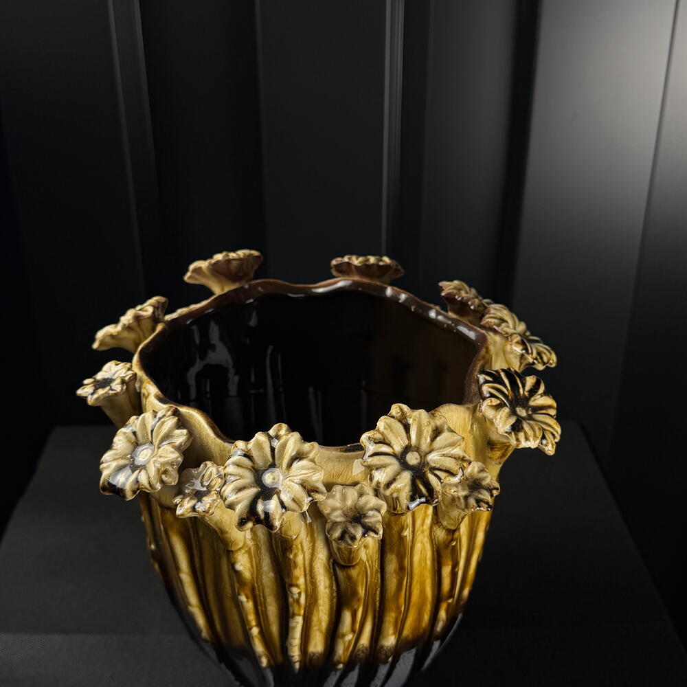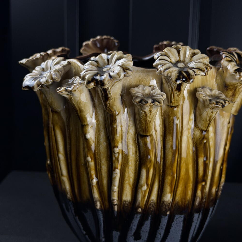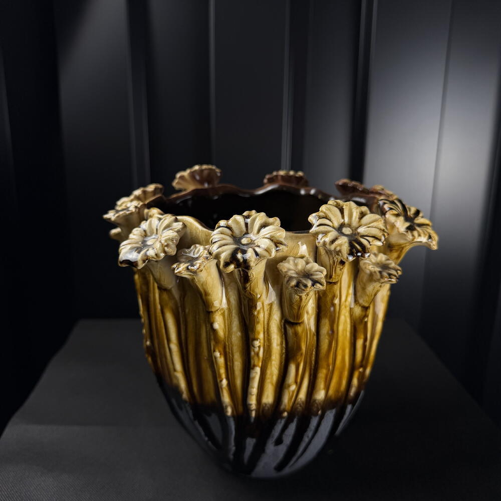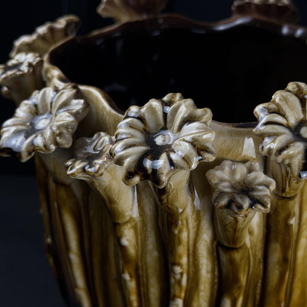 Керамічний горщик d22 із прикріпленими квітами кремово-коричневий від ARAIK GALSTYAN