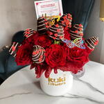 листівка з присвятою - 1 шт. полуниця в шоколаді - 10 шт. міні-троянди - 10 шт.