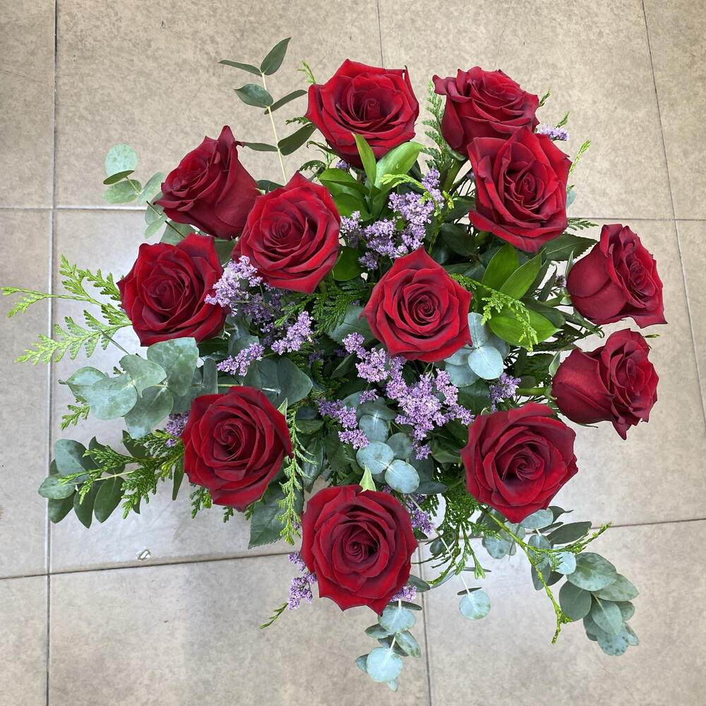 Este producto es imprescindible para los amantes de las flores y los arreglos botánicos. Se trata de una combinación sofisticada de plantas de autor, compuesta por 3 Limoniums, que aportan un toque de elegancia y delicadeza, 8 follajes finos que dan profundidad y textura al conjunto, 12 maravillosas rosas de tallo largo rojas, símbolo de pasión y amor, y 3 satice exquisitas. Este maravilloso conjunto es perfecto para cualquier ocasión, ya sea para decorar tu hogar, para hacer un regalo muy especial o simplemente para animarte el día. Estas flores combinan belleza, frescura y un delicado perfume que embriagará tus sentidos.
