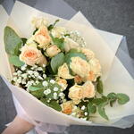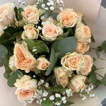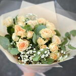 Pistacia - 2 шт. eucalipto - 4 шт. стебла розгалужених троянд у ніжних персикових тонах - 7 шт. стебло панікулати біле - 1 шт.