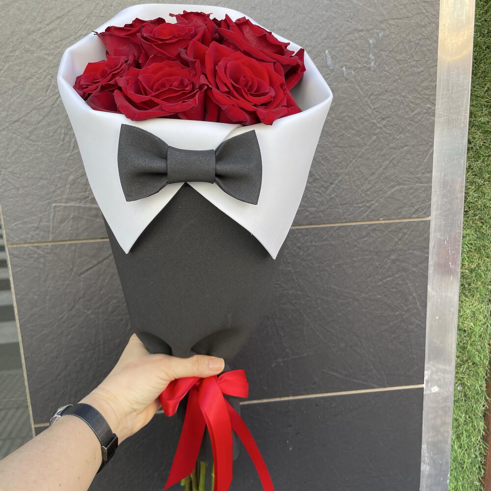 cinta - 1 шт. embalaje - 2 шт. rosa roja - 7 шт.