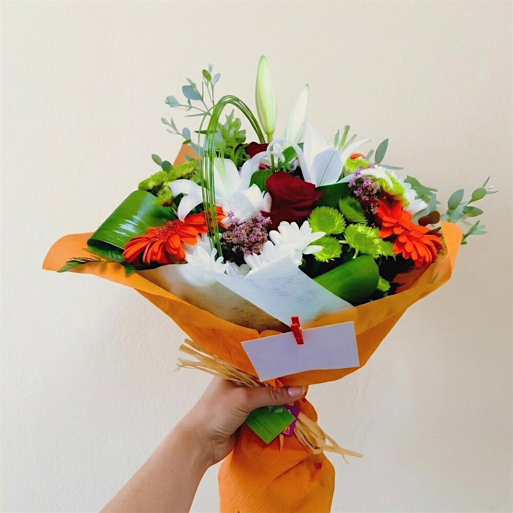 Веселий букет квітів із ретельно відібраними сортами. Завжди гарний у будь-якій тональності.