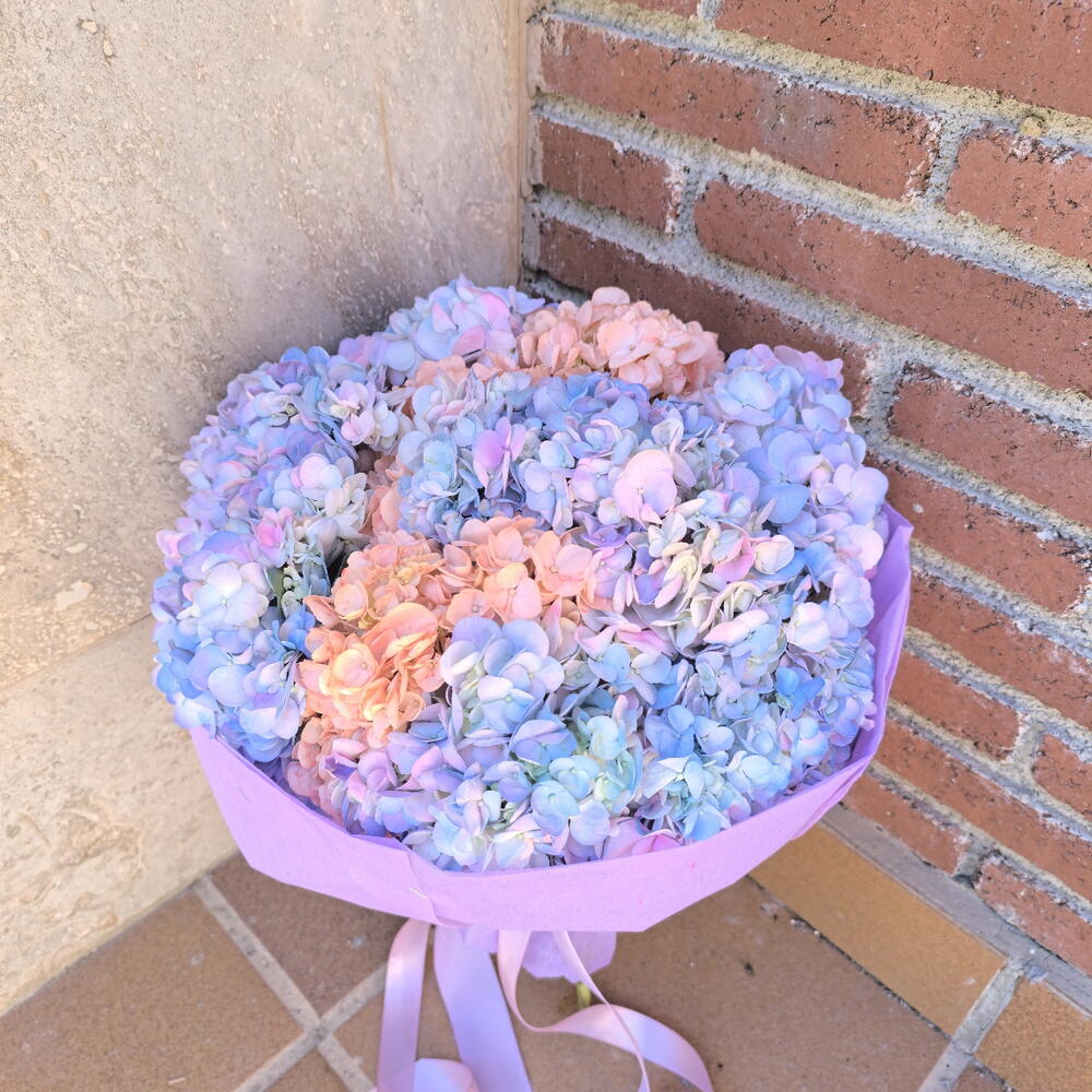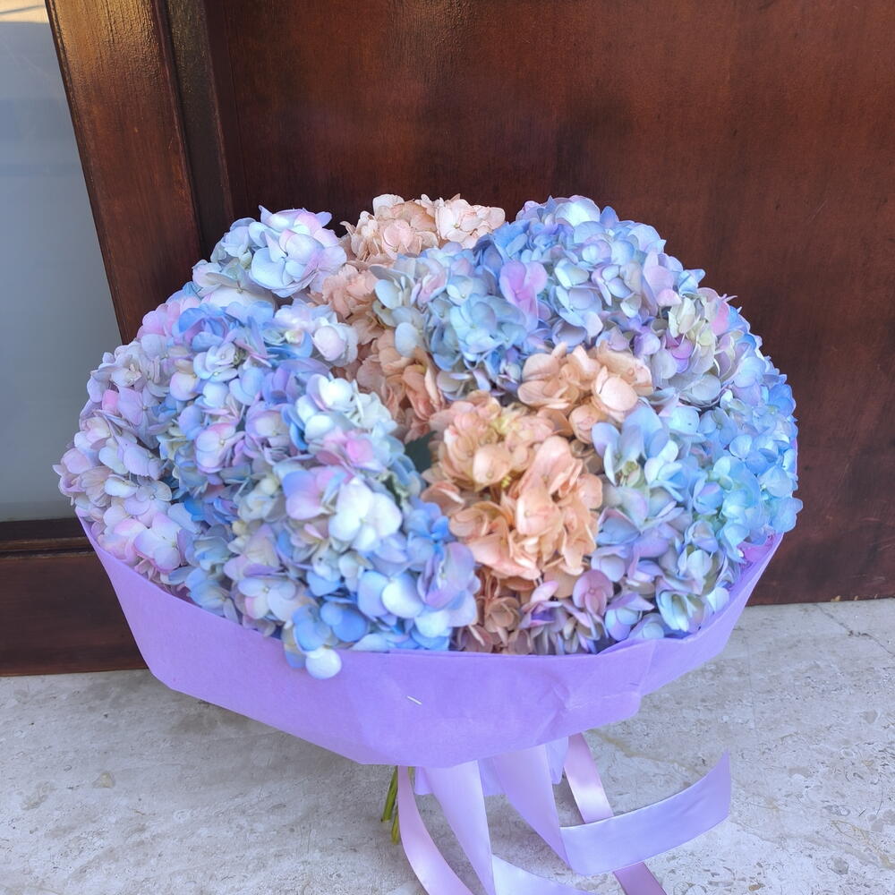 Satin ribbon - 1 шт. пакувальна плівка - 3 шт. блакитно-лавандова гортензія Колумбії - 11 шт.