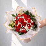 «Buchon Di Manstretta» – це приголомшливий букет, створений для того, щоб зворушити та залишити незабутнє враження. Цей букет, що складається з 25 вишуканих червоних троянд, підкреслених ніжністю гіпсофіли та свіжістю рускуса, є справжнім освідченням у коханні та елегантності. Його обволікаюча та вишукана подача робить його ідеальним подарунком на річниці, дні народження, пропозиції руки та серця чи будь-яку іншу подію, яка заслуговує на надзвичайний жест. Інструкції з догляду: Отримавши букет, поставте його у вазу зі свіжою, чистою водою. Обріжте стебла під кутом, щоб покращити поглинання, та міняйте воду кожні два дні. Тримайте квіти подалі від джерел тепла та прямих сонячних променів, щоб довше зберегти їхню свіжість та колір.