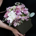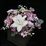 Box - 1 шт. Limonium - 1 шт. Alstroemeria - 1 шт. Lilium - 1 шт. dianthus - 2 шт. eucalipto - 1 шт. clavel - 2 шт. хризантема - 1 шт. панікулата - 1 шт. фітоспорум - 1 шт.