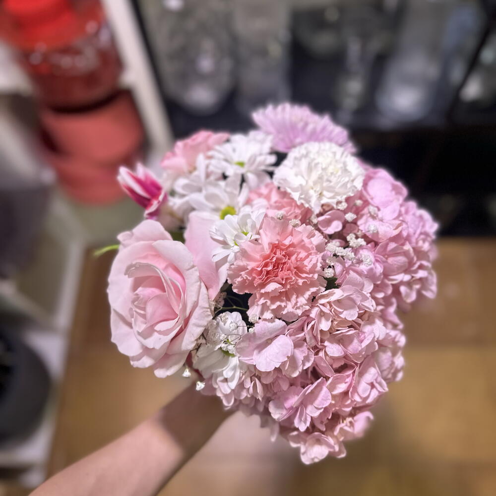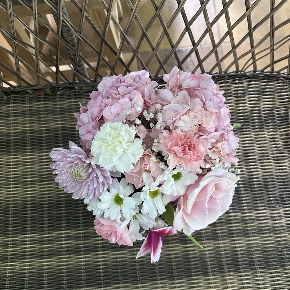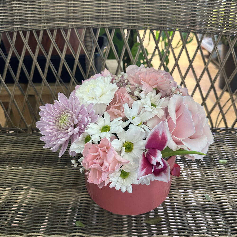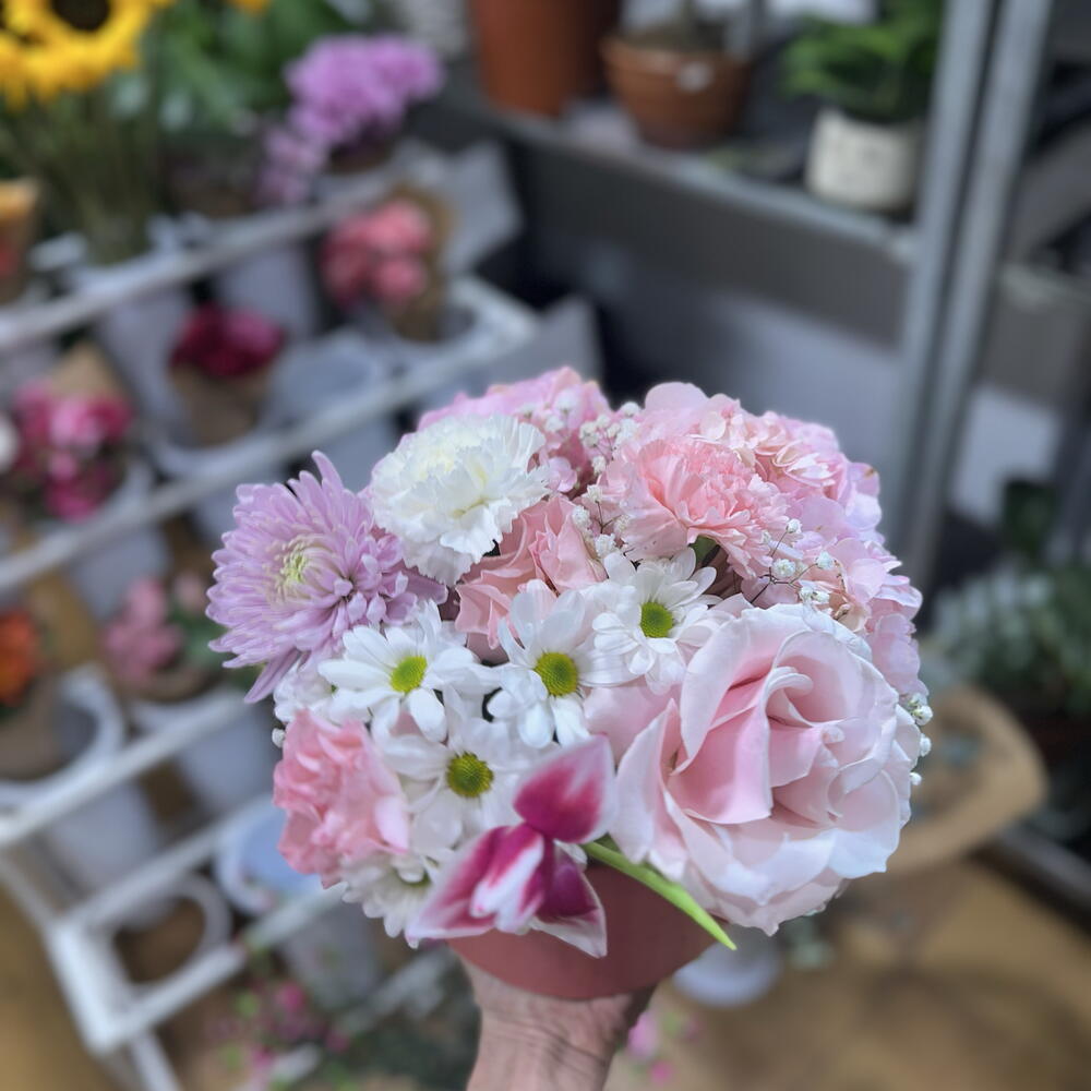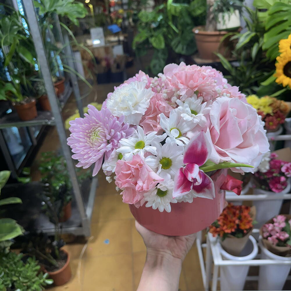 crisantemo - 2 шт. clavel - 5 шт. тюльпан - 1 шт. hortensia rosa palo - 1 шт. relleno pani - 1 шт. spray mini rose - 3 шт. french rosa - 1 шт.