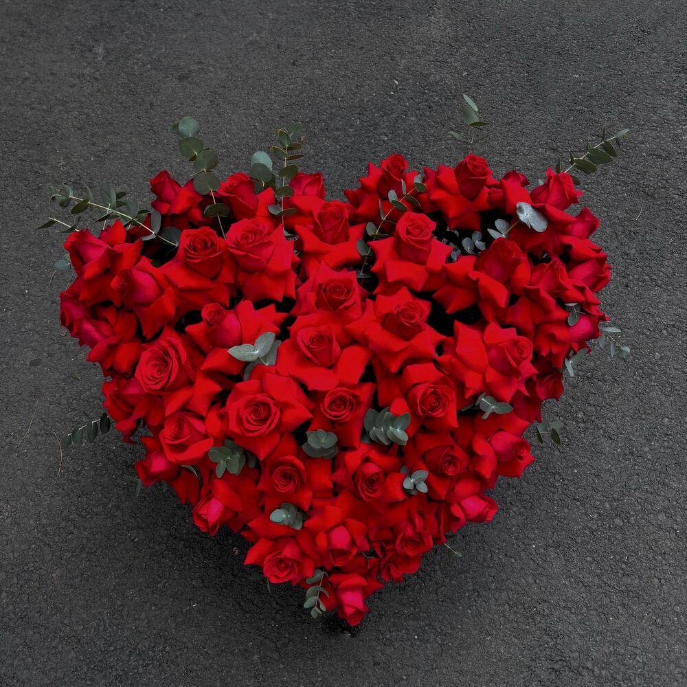Здивуйте своїх коханих цією центральною композицією у формі серця з 51 червоної троянди – візуальним свідоцтвом вічного кохання. Ретельно створена, ця квіткова композиція передає пристрасть, романтику та елегантність. Ідеально підходить для особливих випадків, таких як річниці, дні народження, День святого Валентина, або просто для того, щоб стильно сказати «Я тебе кохаю». Кожна червона троянда символізує глибоке почуття, а дотик 5 натуральних гілок евкаліпта надає їй свіжого аромату та вишуканого вигляду. Вона постачається в коробці у формі серця, що додає композиції додаткової вишуканості. Інструкції з догляду: Зберігайте троянди в прохолодному місці та уникайте прямих сонячних променів або надмірного тепла. Поповнюйте флористичну піну свіжою водою кожні два дні, щоб продовжити свіжість квітів. Ви можете злегка обприскувати листя евкаліпта, щоб довше зберегти їхній природний аромат.