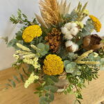 eucalipto - 14 шт. пампа - 1 шт. жовтий лімоніум - 5 шт. лентіско - 6 шт. пшениця - 10 шт. тисячолистник - 3 шт. стабілізована мімоза - 2 шт. квітка бавовнику - 1 шт. дерев'яна квітка - 1 шт.