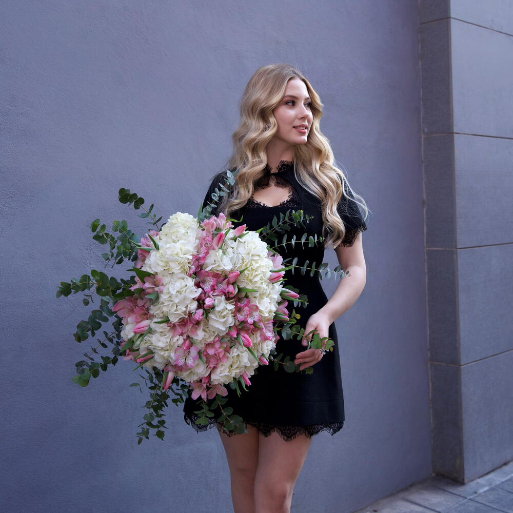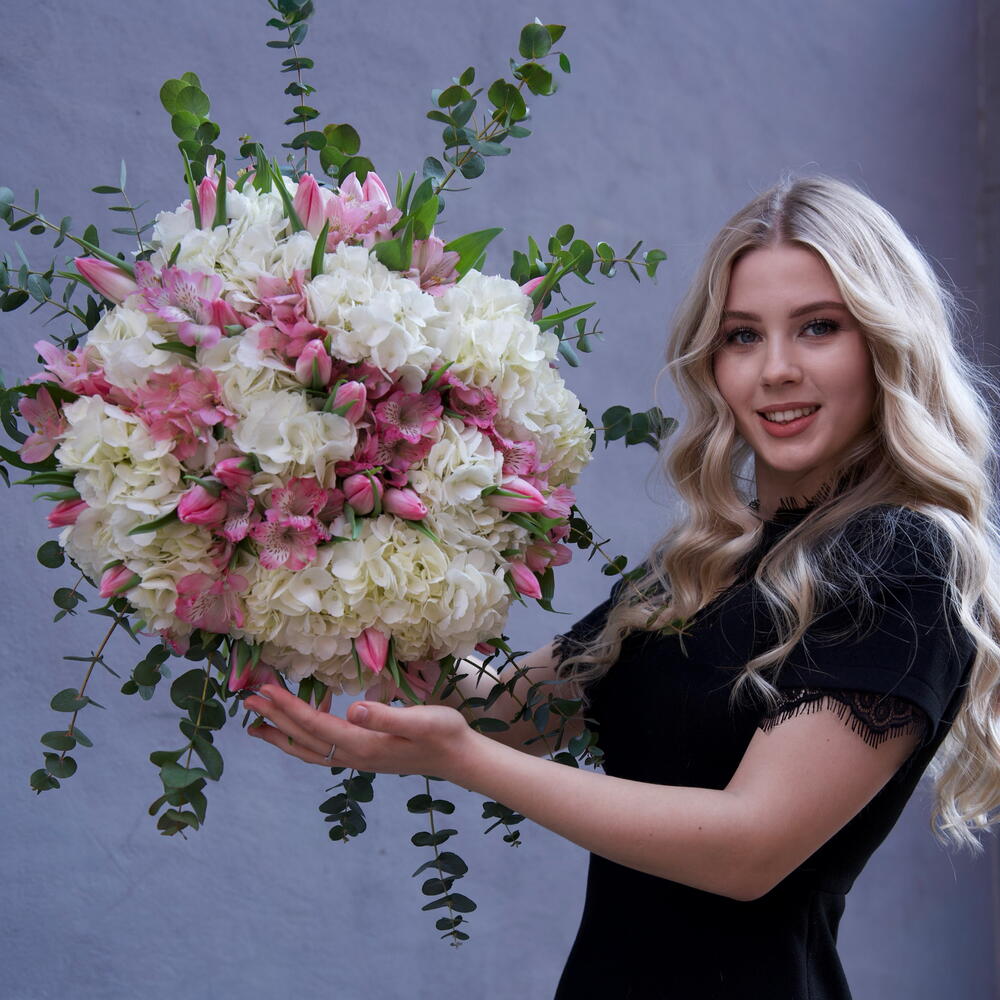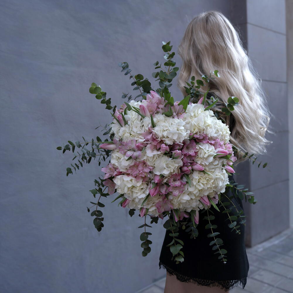 Alstroemeria - 10 шт. hortensia - 10 шт. tulipanes - 10 шт. eucalipto - 5 шт.